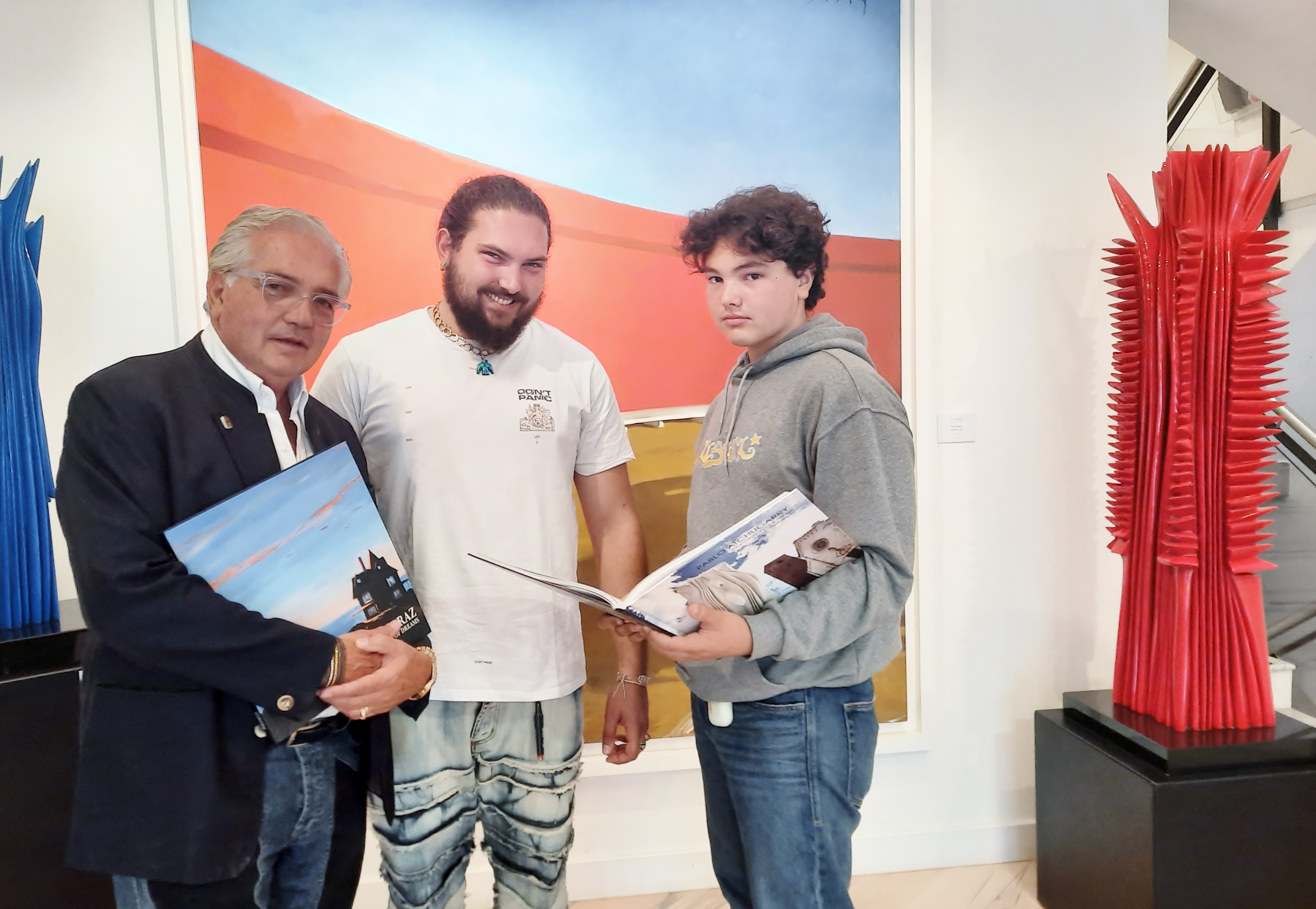 Stefano Contini, collezionista, gallerista e mercante d'arte, nella sua galleria con i figli Riccardo e Tommaso. Una vita la sua, dedicata all'arte, con vetrine a Cortina, a Venezia e all'estero. Stefano Contini ha fatto della sua passione un obiettivo di vita. Cortina d'Ampezzo 25 agosto 2023 foto di Francesca Witzmann